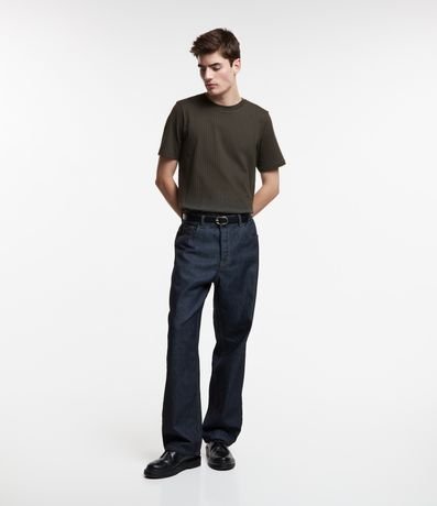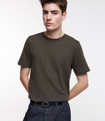 Ref: Camiseta masculina, confeccionada em algodão, com gola redonda, mangas curtas e textura canelada.