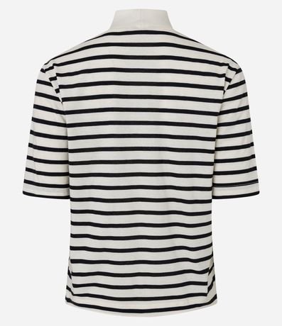 Camiseta em Algodão Listrada com Gola Alta
