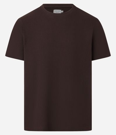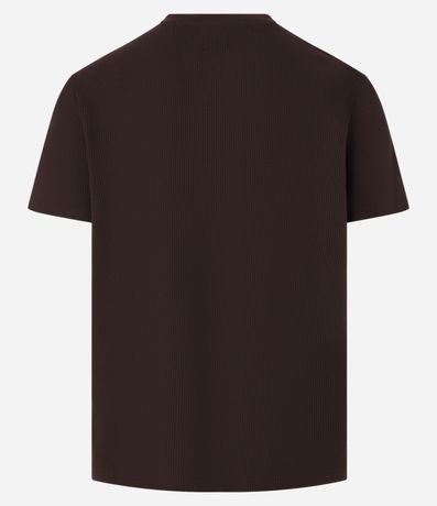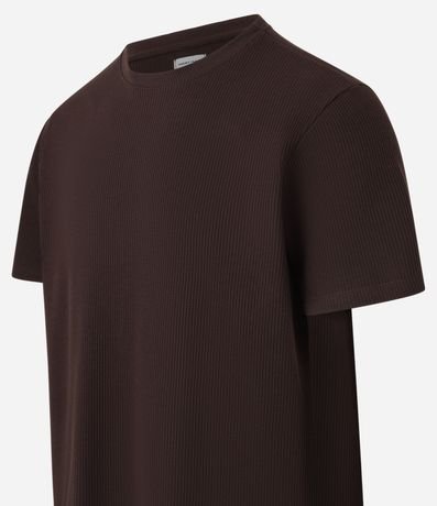 Camiseta masculina confeccionada com material e processo mais sustentável. Possui gola redonda, manga curta e textura canelada.