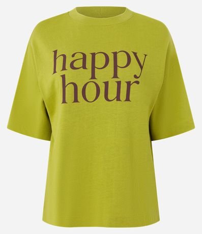 Ref: Camiseta box de mangas curtas, confeccionada em malhão, com gola redonda e lettering "happy hour" estampado no peito. Este produto possui algodão certificado BCI em sua composição, além de ter sido produzido através de processos mais sustentáveis com boas práticas ambientais, sendo ambientalmente mais responsável.
