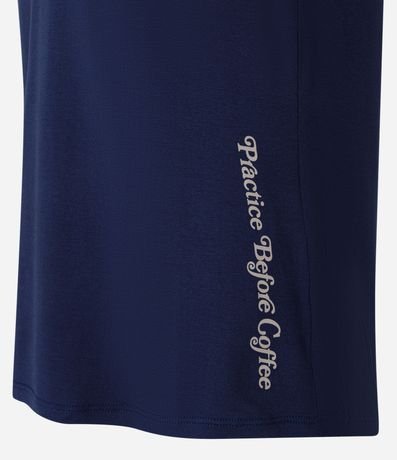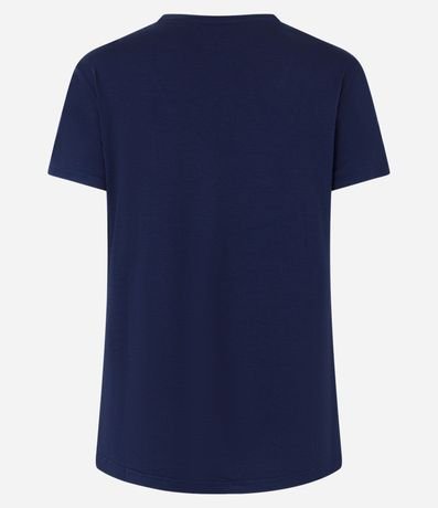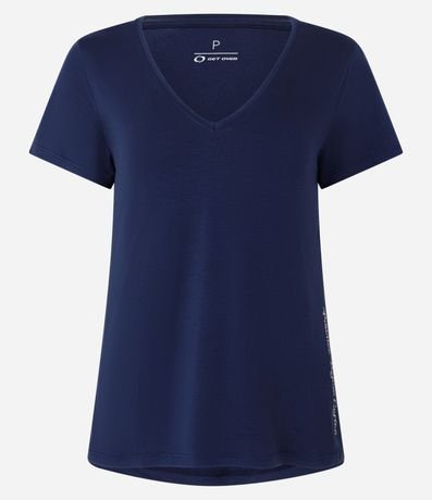 Ref: Camiseta esportiva feminina, confeccionada em viscose, com gola redonda, mangas curtas e estampa lettering.