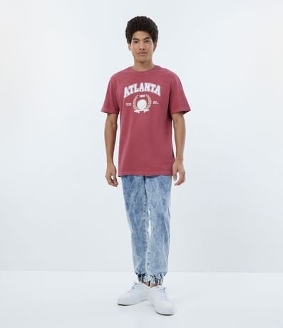 Camiseta em Meia Malha Manga Curta com Lettering Atlanta