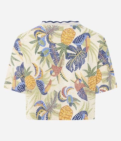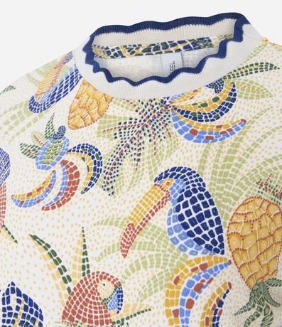 Ref: Camiseta curta em moletinho sem felpa com estampa tropical inspirada em mosaicos. Possui gola ondulada em contraste, mangas curtas e modelagem confortável. Ideal para o dia a dia, confeccionado em viscose certificada que apoia práticas mais responsáveis.