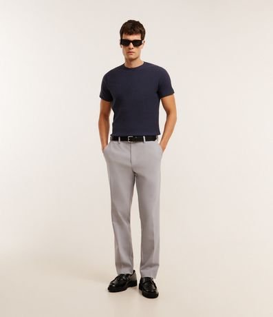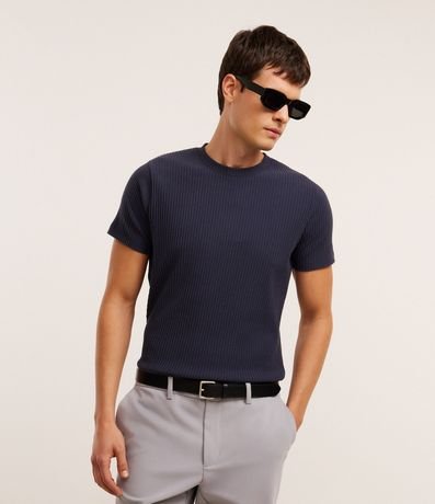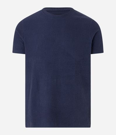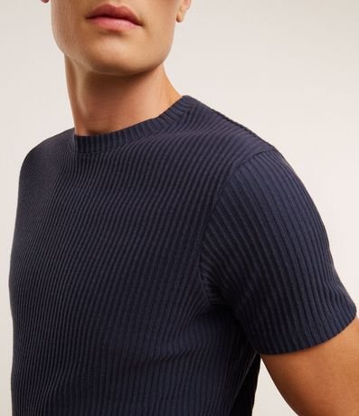 Camiseta masculina confeccionada em ribana com textura aveludada, gola redonda e manga curta.