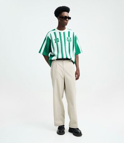 Camiseta manga curta, confeccionada em tricô com cava deslocada, manga curta e lettering 10 Reckless.