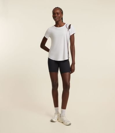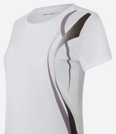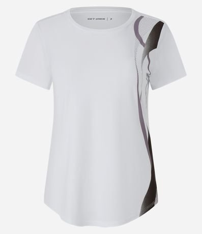 Ref: Camiseta feminina esportiva, confeccionada em malha de poliéster, com gola redonda e mangas curtas.