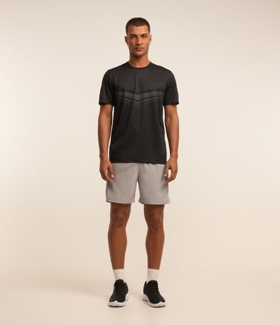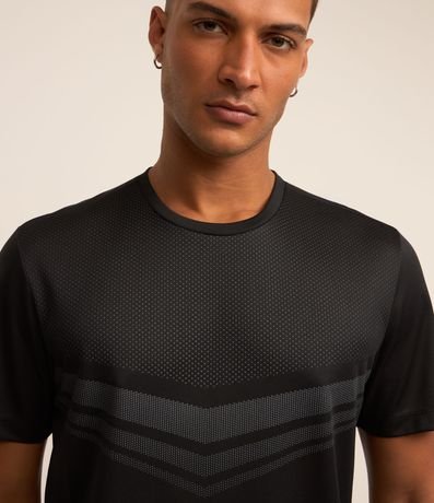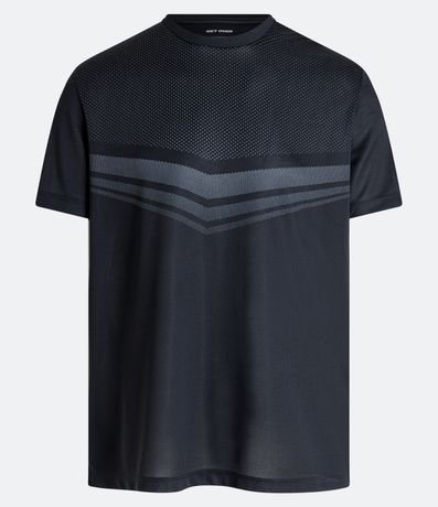 Ref: Camiseta esportiva masculina, com gola redonda, mangas curtas e estampa delta pontilhado.