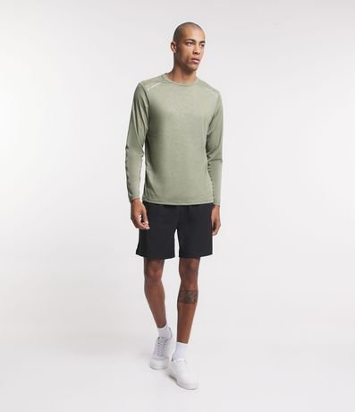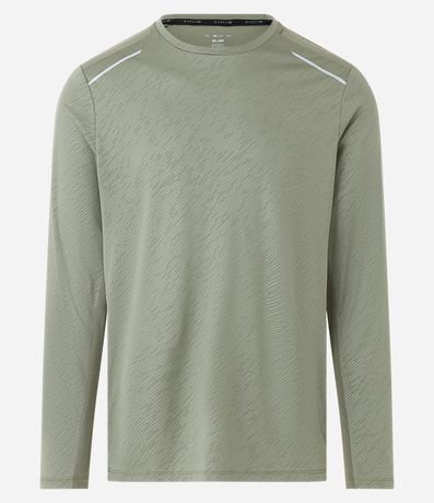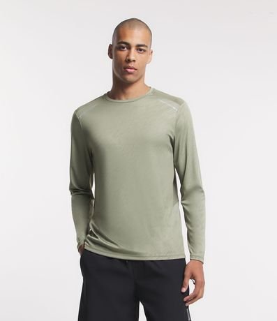 Ref: Camiseta masculina esportiva, com gola redonda e mangas longas. Possui estampa riscada e detalhes refletivos. Peça confeccionada com maior tecnologia e proteção uv.