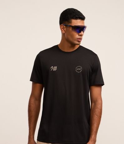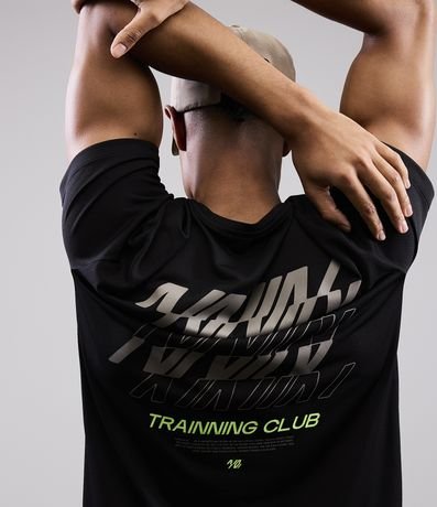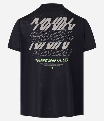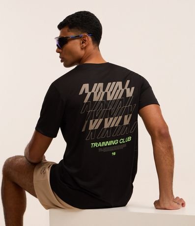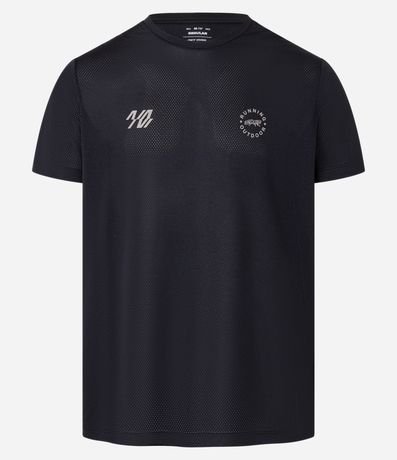 Ref: Camiseta esportiva masculina confeccionada com tecnologia dry com boas práticas ambientais, modelo regular. Possui gola redonda, manga curta, estampa localizada corrida e estampa lettering, frontais e traseiras.
