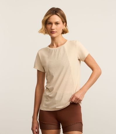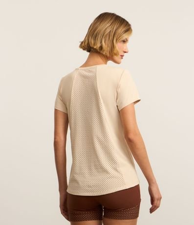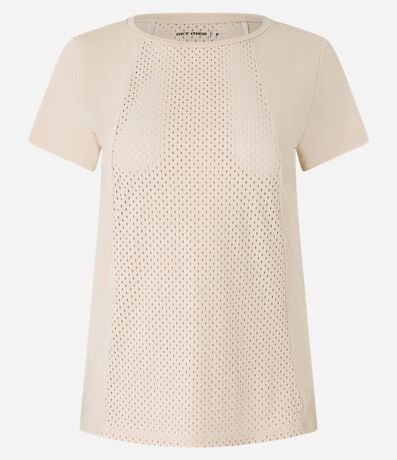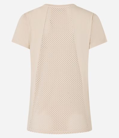 Ref: Camiseta esportiva confeccionada em microfibra. A peça tem gola redonda, mangas curtas e recortes furadinhos na parte da frente e de trás.