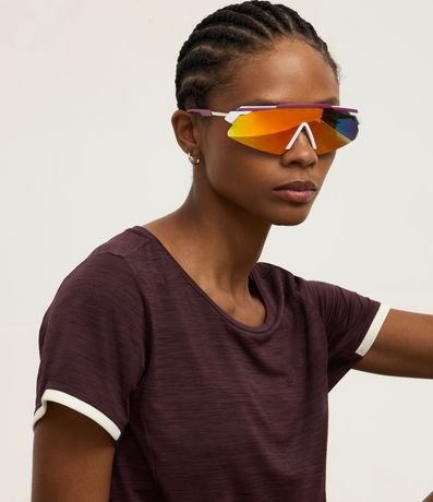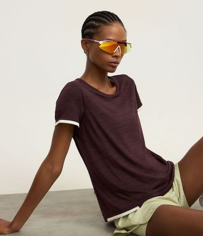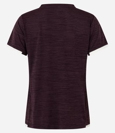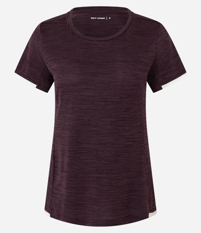Ref: Camiseta feminina esportiva confeccionada em microfibra com tecnologia Dry, garantindo conforto e respirabilidade durante os treinos. Possui modelagem regular, manga curta e gola redonda, com detalhe de recorte contrastante nas barras.