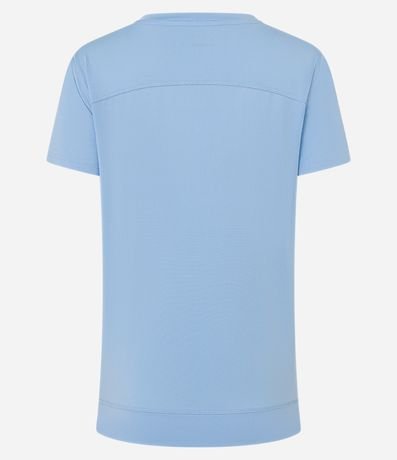 Camiseta esportiva confeccionada em microfibra de origem mais sustentável. A peça tem decote V, mangas curtas e barra traseira mais longa que a frontal (mullet). O tecido é furadinho, o que oferece maior conforto térmico.