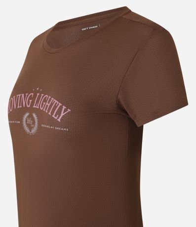 Ref: Camiseta confeccionada em microfibra leve e texturizada de furinhos, o que torna a peça respirável e ideal para a prática de exercícios. A blusa esportiva tem gola redonda, mangas curtas e estampa frontal "moving lightly".