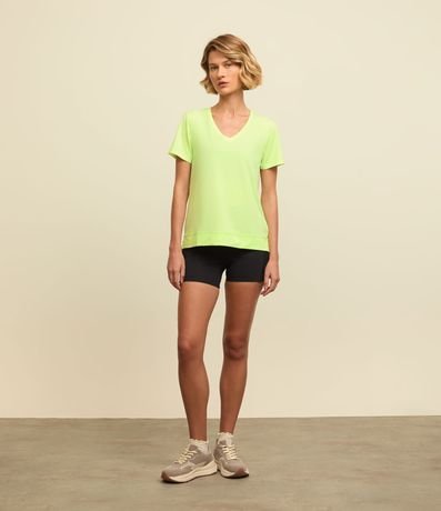 Camiseta esportiva feminina manga curta e decote v. Peça confeccionada microfibra. Conta com furinhos que facilitam o processo de transpiração e secagem da roupa, garantindo maior conforto e praticidade no seu dia a dia fitness e desportivo.