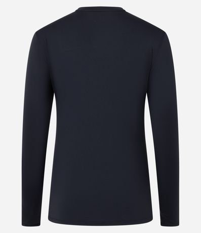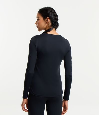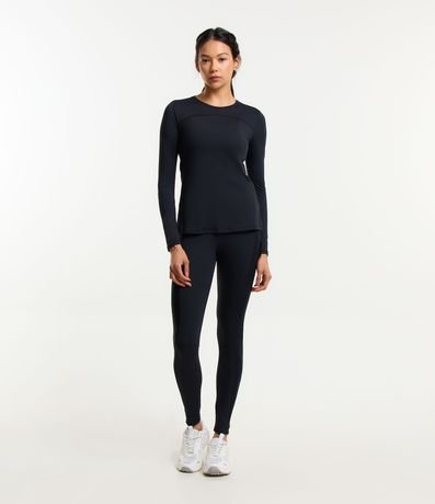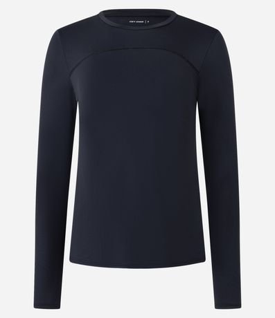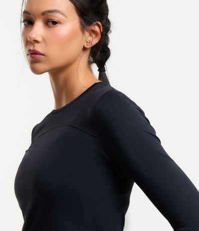 Ref: Camiseta esportiva feminina, confeccionada em poliamida, com proteção UV, mangas longas e cava raglan.