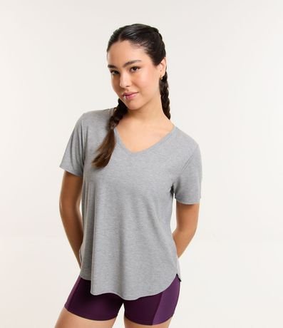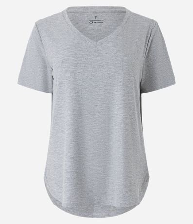 Ref: Camiseta esportiva de mangas curtas confeccionada em ribana com decote V. Conta com textura canelada e fundo mesclado.