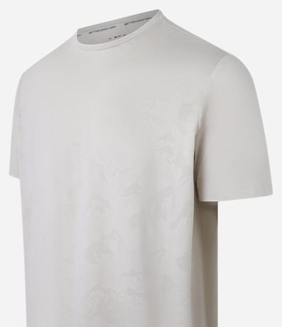 Ref: Camiseta masculina confeccionada em tecnologia dry, modelo esportivo com estampa jacquard, gola redonda e manga curta.