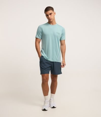 Ref: Camiseta masculina confeccionada em tecnologia dry, gola redonda, manga curta. No modelo esportivo peças contém estampa laser cut e detalhe de cava raglan.