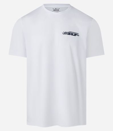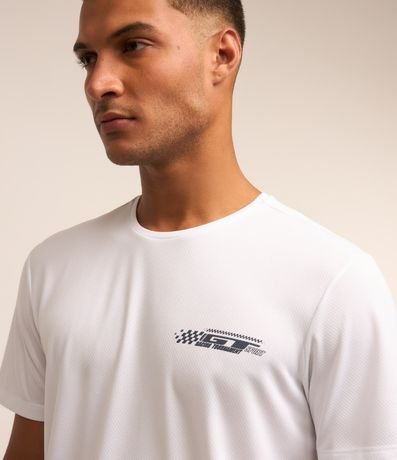 Ref: Camiseta masculina confeccionada em tecnologia dry, com gola redonda e manga curta. Peça no modelo esportivo com estampa lettering.