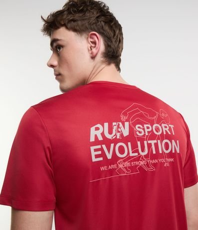 Camiseta masculina, modelo esportivo, com gola redonda e manga curta. Confeccionada no material Tecnologia Dry, a peça contém estampa no peito e nas costas referente a corrida.