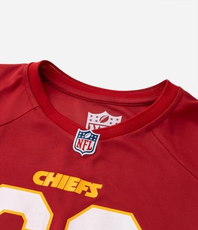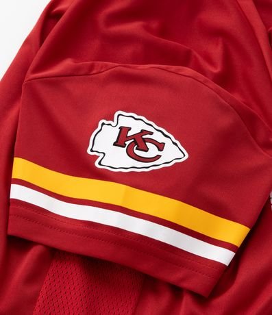 Ref: Camiseta infantil esportiva, com estampa do time de futebol americano Chiefs, da Liga NFL. Possui lettering frontal "Chiefs 60", e listras nas mangas.