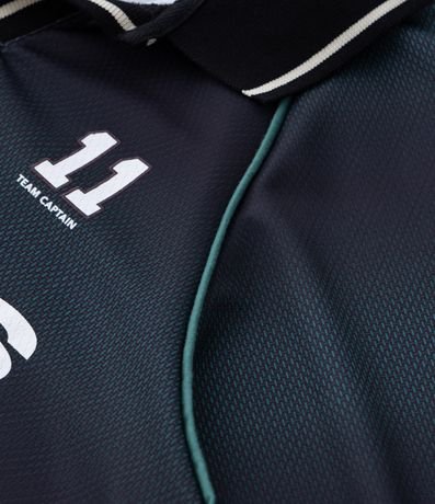 Camiseta infantil de modelo esportivo, com gola polo, mangas curtas e estampa lettering "Kansas".