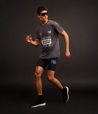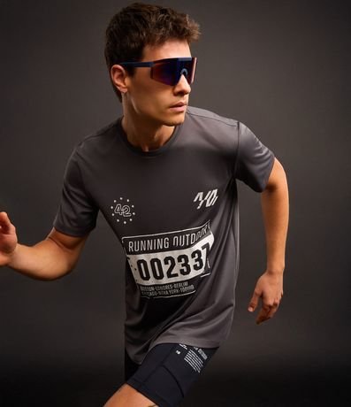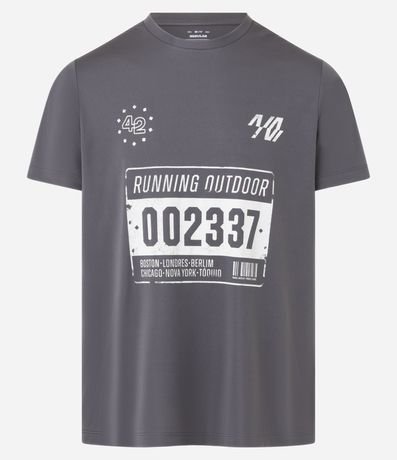 Camiseta Esportiva Regular com Tecnologia Dry e Estampa Corrida