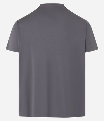 Camiseta esportiva masculina confeccionada com tecnologia dry e boas práticas ambientais, no modelo regular. Possui gola redonda, manga curta, estampa corrida e lettering.