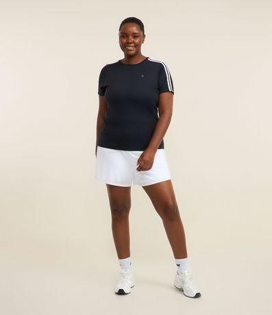 Camiseta plus size confeccionada em poliamida com tecnologia dry. Esta blusa com mangas curtas, gola V e detalhe contrastante nos ombros é ideal para usar durante exercícios físicos!