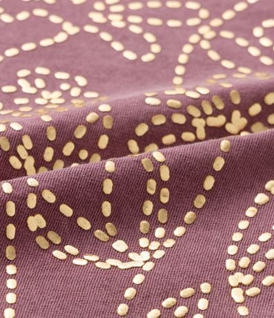 O foil é uma película super fina que aplicada na superfície do tecido, traz um efeito metalizado as peças. Essa aplicação pode fazer parte de diversos tipos de estampa, possibilitando a criação e o preenchimento de imagens, letterings e detalhes, enriquecendo o design do produto.
