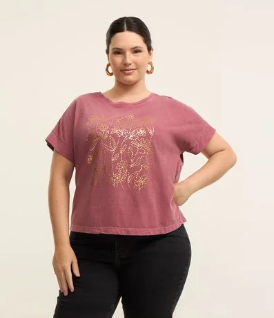 Ref: T-shirt de algodão com efeito estonado. A camiseta tem gola redonda, mangas curtas sem cavas e estampa frontal de flores metalizadas (foil).