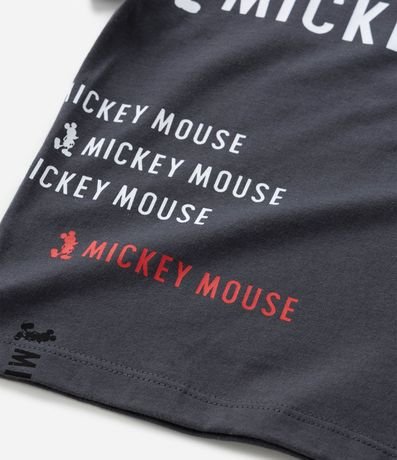 Ref: Camiseta infantil confeccionada em algodão de material e processo mais sustentáveis. Possui gola redonda, manga curta, bolsinho e estampa do Mickey.