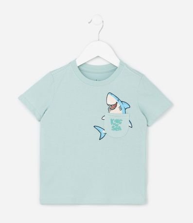 Camiseta Infantil com Bolso Estampado de Tubarão - Tam 1 a 6 Anos