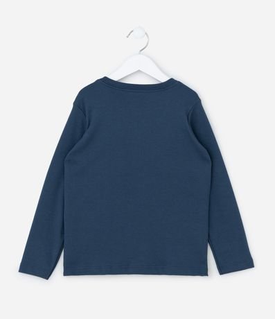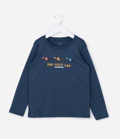 Ref: Camiseta infantil confeccionada em suedine de material mais sustentável. Possui gola redonda, manga longa e bordado de carrinhos de corrida.