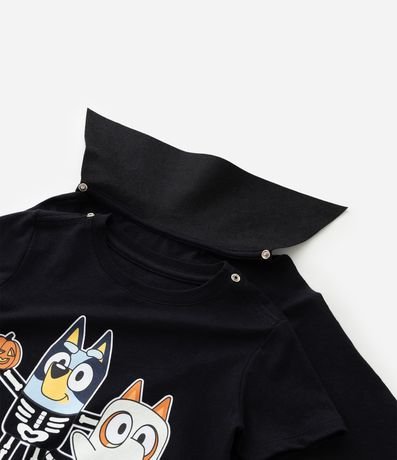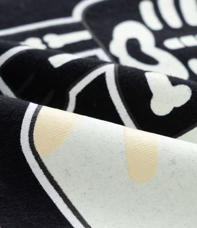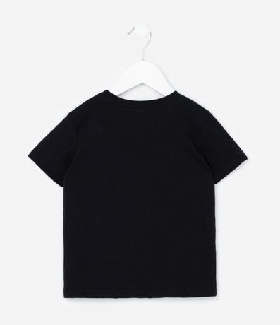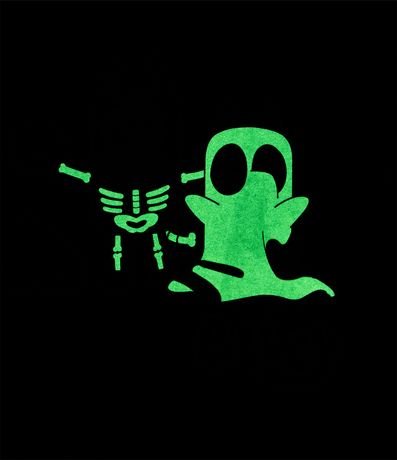 Ref: Camiseta infantil de gola redonda, manga curta e estampa que brilha no escuro. A peça ainda possui capa.