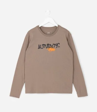 Ref: Camiseta infantil confeccionada em algodão certificado BCI, oferecendo toque macio e conforto para o dia a dia. Possui gola redonda, mangas longas e estampa localizada com lettering Authentic em estilo grafitado, criando visual urbano e moderno para composições casuais.