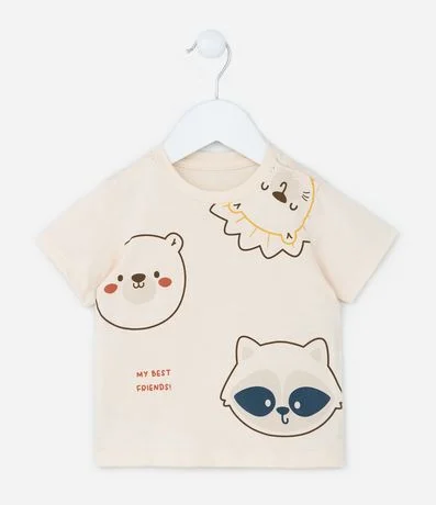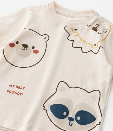 Ref: Camiseta infantil confeccionada em algodão, com gola redonda e mangas curtas. Possui estampa de bichinhos.