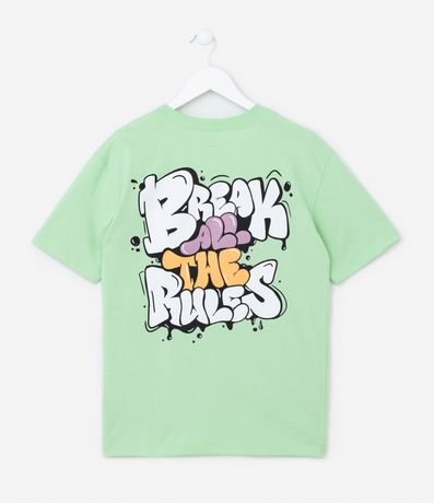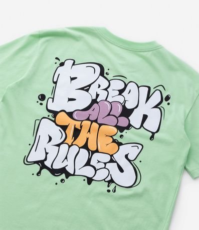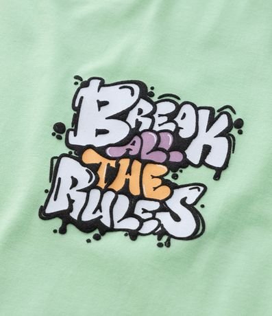 Ref: Camiseta infantil confeccionada em algodão com gola redonda, manga curta e lettering "Break all the Rules".