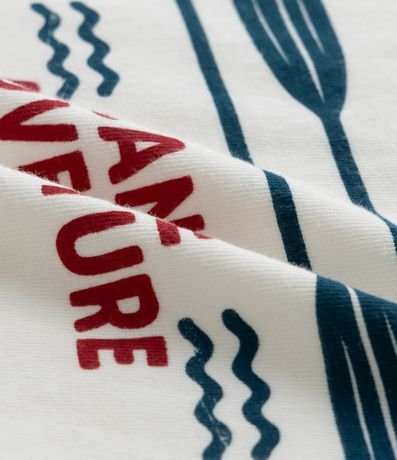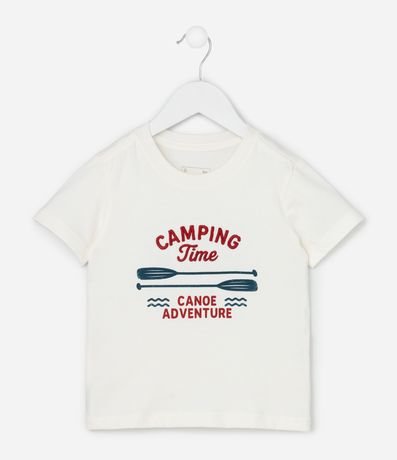 Camiseta infantil confeccionada em algodão mais sustentável através de boas práticas ambientais. Possui gola redonda, manga curta e estampa Camping Time.