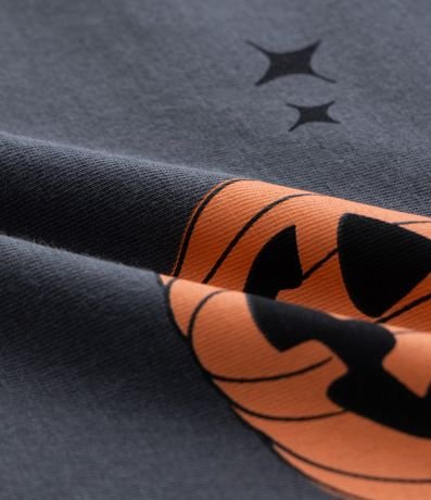 Camiseta infantil com gola redonda, mangas curtas e estampa capivara com lettering "Capy-Boo". A peça é confeccionada com algodão certificado bci.