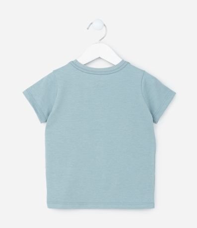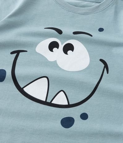 Ref: Camiseta infantil em algodão e poliéster, com golinha redonda, manga curta e estampa frontal de carinha de monstrinho.