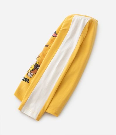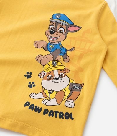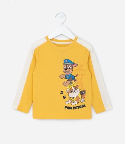 Ref: Camiseta infantil, manga longa, em meia malha, recorte ottoman nas mangas e estampa frontal Chase e Rubble, Patrulha Canina.