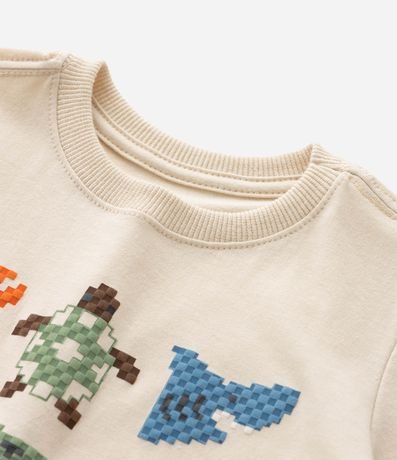Ref: Camiseta infantil confeccionada em algodão mais sustentável através de boas práticas ambientais. Possui gola redonda, manga curta e estampa de animais em pixels.