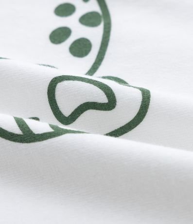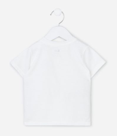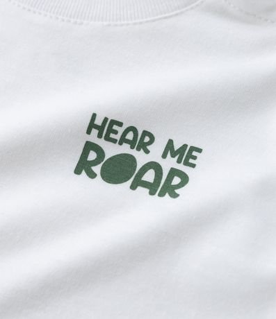 Camiseta infantil confeccionada em algodão mais sustentável através de boas práticas ambientais. Possui gola redonda, com abotoamento, manga curta e estampa de dinossauro.