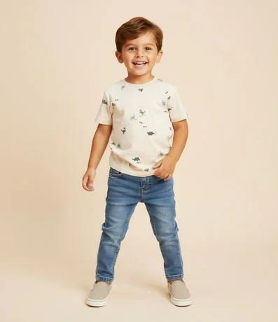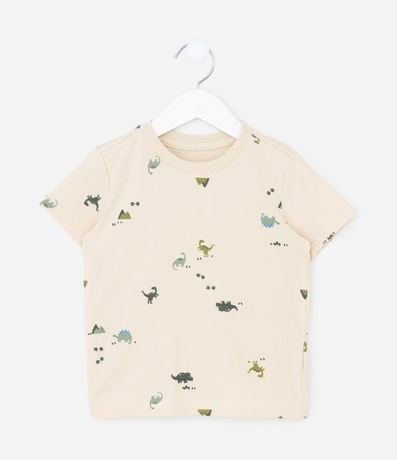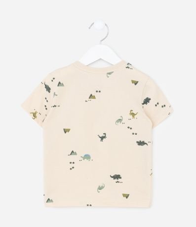 Ref: Camiseta infantil confeccionada em meia malha de algodão certificado BCI, com gola redonda canelada e mangas curtas. Possui estampa fullprint de dinossauros distribuída por toda a peça, garantindo leveza, respirabilidade e estrutura adequada ao uso diário.