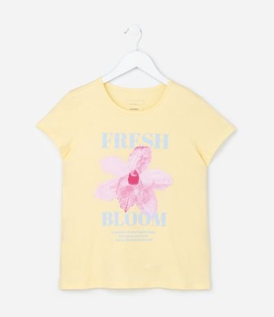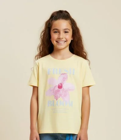 Ref: Camsieta infantil confeccionada em algodão de material mais sustentável, com gola redonda, manga curta e estampa de flor.