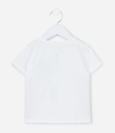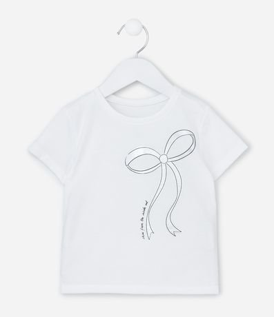 Ref: Camiseta infantil confeccionada em algodão mais sustentável através de boas práticas ambientais. Possui gola redonda, manga curta e estampa de laço.