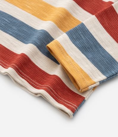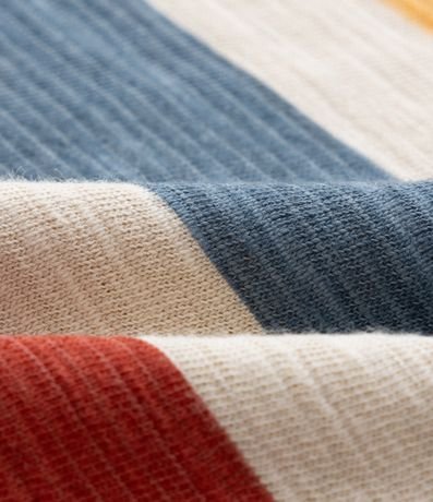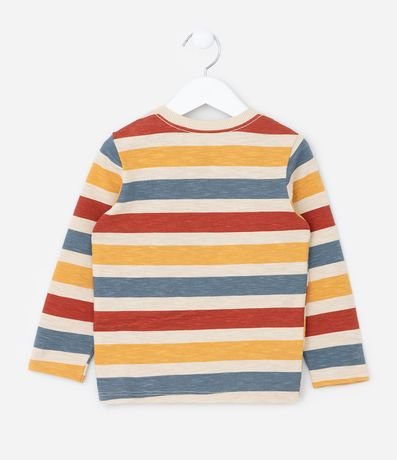 Ref: Camiseta infantil confeccionada em flame, de material mais sustentável. Possui gola redonda, mangas longas e estampa listradinha.