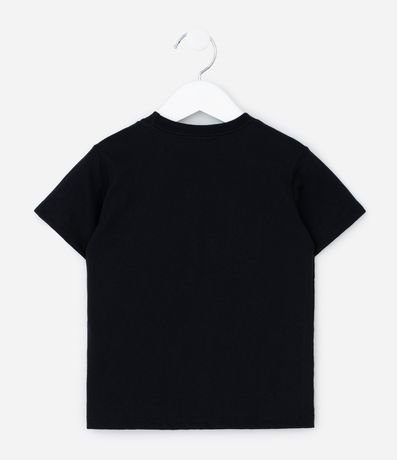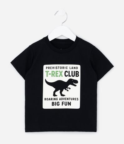 Camiseta infantil de mangas curtas, confeccionada em algodão, com gola redonda e estampa dinossauro T-Rex com lettering. Este produto possui pet reciclado em sua composição, além de ter sido produzido através de processos mais sustentáveis, sendo ambientalmente mais responsável.