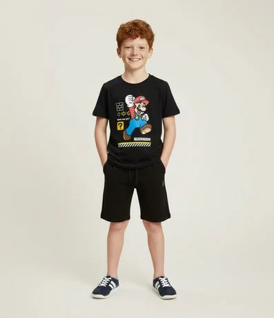 Ref: Camiseta infantil com golinha redonda, manga curta e estampa frontal do Super Mário Bross.